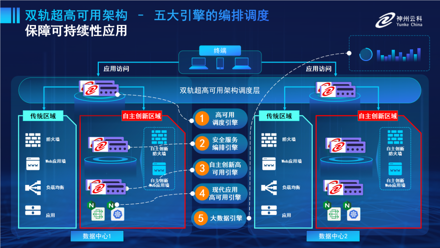 为满足数据中心双轨建设信创区和非信创区跨域协同,神州泛亚电竞通过5大引擎实现双区无缝切换,跨域协同。